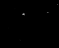 M-77 is one of the closest Seyfert galaxies (galaxies whose nuclei emit intense infrared radiation) and is found in the constellation Cetus. I observed it to have a starlike core and bright arms on each side. M-77 reminds me of a colossal flying saucer in the distance.