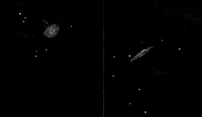 There are two, bright fascinating galaxies only 3/4 of a degree apart. The first, M-81, appears as an oval nebulosity with a bright inner portion. The spiral arms are very faint. M-81 is often chosen as the "typical spiral" for photographs in textbooks and is relatively near the Milky Way.