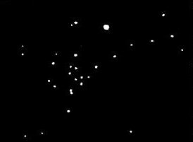 There is an open cluster right next to Phi Cassiopeiae, H.VII.42. It is in an intermediately rich region. There are two other items of note: 1) its shape -- elongated, with two "arms" of stars on each side, and 2) the close double star off center.