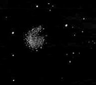 M-71 has been classed separately as a globular and an open cluster. To date I am not sure which it really is. Shaped like a giant comma, it has the fuzziness and sprinkling of stars of a globular, but it has the unspherical shape of an open. Is it a distant, dense open? Or a broken, dented globular? My own guess was that it is an open in front of a globular. In any case, M-71 is a small, beautiful punctuation mark in the sky.
