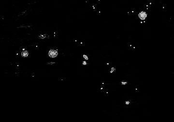 M-87 is a famous radio galaxy. Separated from the above galaxies, it is a bright, compact elliptical. And that completes this section of the Virgo Cluster of Galaxies.